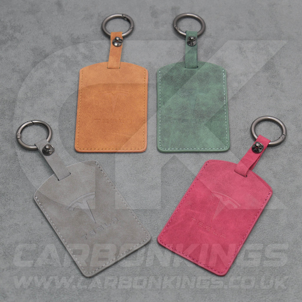 Tesla Leather Car Key Card Keycard Holder Protector in Grey / Orange / Green / Red